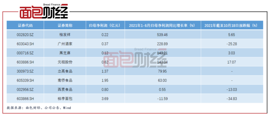 圖4:8家烘焙食品企業(yè)2021年上半年業(yè)績與股價表現(xiàn)