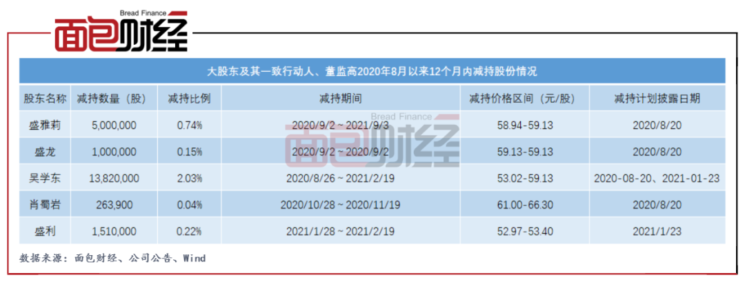 除了此次減持,桃李面包大股東及其一致行動人、董監(jiān)高自2020年8月以來的12個月內(nèi)合計減持2159.39萬股。按照減持價格區(qū)間中值測算,這些股東在此期間累計套現(xiàn)超過12億元。