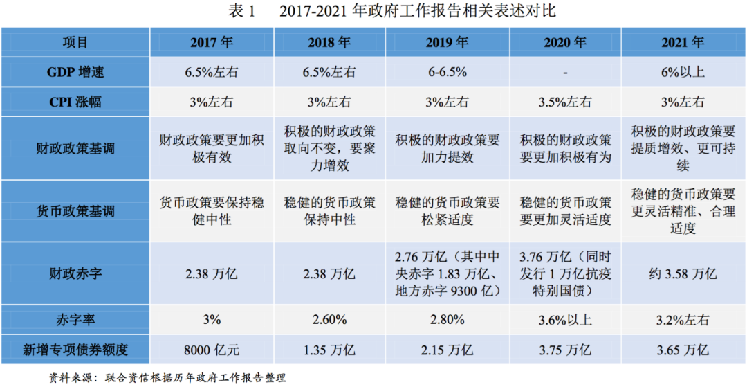 根據(jù)2021年《政府工作報告》,今年國內(nèi)生產(chǎn)總值預(yù)期增速目標設(shè)定為6%以上,考慮到疫情得到有效控制和經(jīng)濟逐步恢復(fù),赤字率擬按3.2%左右安排,不再發(fā)行抗疫特別國債,擬安排地方政府專項債券3.65萬億元,同時強調(diào)優(yōu)化債券資金使用,合理擴大使用范圍。《政府工作報告》為今年政府債券的發(fā)行規(guī)模及投向定下了整體基調(diào)。全國人大財政經(jīng)濟委員會在《關(guān)于2020年中央和地方預(yù)算執(zhí)行情況與2021年中央和地方預(yù)算草案的審查結(jié)果報告》中則提出要強化地方政府債務(wù)管理,并首次提到要指導(dǎo)地方對可能存在風險的專項債項目進行排查,研究制定處置措施,積極防范風險。結(jié)合近期的相關(guān)文件,我們對于2021年地方政府債券市場可能的變化趨勢進行了總結(jié)。