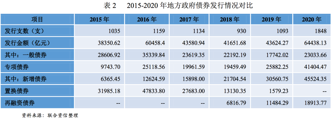 發(fā)行規(guī)模預(yù)測:根據(jù)《政府工作報告》,2021年赤字率擬按3.20%安排,假設(shè)2021年國內(nèi)生產(chǎn)總值名義增長率10%,中央和地方赤字按2:1測算,地方財政赤字約1.21萬億元,即為新增一般債券發(fā)行額度;新增專項債券額度3.65萬億元,較2020年下降0.10萬億元,專項債退坡力度明顯小于此前市場預(yù)期,預(yù)計主要為緩解近年減稅增支大環(huán)境對地方政府財政帶來的壓力。2021年,地方政府債券到期規(guī)模2.67萬億元(其中一般債券到期1.53萬億元,專項債券到期1.14萬億元),考慮到財政收支壓力下債務(wù)償還對再融資的依賴程度不減,再融資比率按近三年的最高值86%測算,預(yù)計再融資債券發(fā)行規(guī)模將達到2.29萬億元。加之2020年未使用的約1500億中小銀行專項債,預(yù)計2021年全年地方政府債券發(fā)行規(guī)模將達到7.30萬億元(其中新增債券5.01萬億元),一般債券發(fā)行將達到2.52萬億元,專項債券發(fā)行將達到4.78萬億元。從凈融資規(guī)模看,2018-2020年,地方政府債券凈融資額分別為3.33萬億、3.05萬億和4.37萬億,預(yù)計2021年凈融資額4.63萬億,供給規(guī)模高于往年。整體看,隨著前期所發(fā)債券的陸續(xù)到期,2021年再融資債券規(guī)模增幅較大,同時新增規(guī)模仍保持高位,全年地方政府債券供給壓力高于往年。