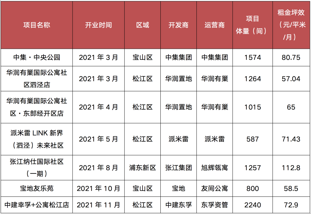 目前,上海多以租賃用地建設租賃住房,而北京則是以集體用地建設的租賃住房為主。以上海為例,目前推出的租賃社區(qū)項目均位于城市郊區(qū),開業(yè)時間都在2021年,項目體量較大,均超過500間。