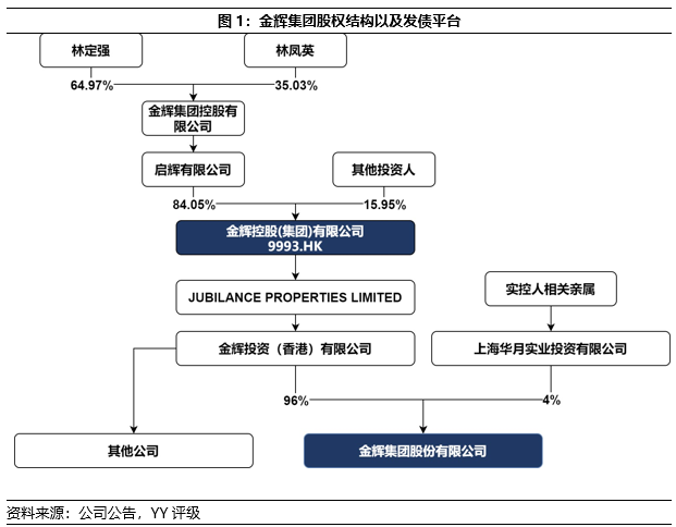 不若其他閩/粵系房企存在一代旁系家族成員持股,金輝集團的股權集中,實控人之子已于企業(yè)內部擔任高管,治理結構穩(wěn)定。截至2021年3月31日,金輝集團(9993.HK)由林定強及其配偶林鳳英持84.05%絕對多數股權,其子林宇雖無持股,但已于2011年進入公司并于2019年任執(zhí)行董事兼執(zhí)行總裁一職。