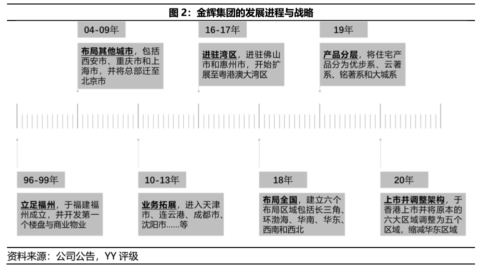 金輝集團的跨區(qū)域戰(zhàn)略布局緩慢,自96年于福州成立后至16年進駐緊鄰的灣區(qū)花了20年,其中或有02年與融僑合作致使金輝自有品牌布局較慢所致,但對于核心城市的全國化布局仍稍顯緩慢。與其他房企自一線城市串聯至二三線城市的模式不同,金輝集團早期布局上海并遷總部于北京后,其發(fā)展區(qū)域圍繞著西北、西南和東北區(qū)域,而非自一線有序下沉至二三線,此一節(jié)奏或為導致金輝集團的發(fā)展滯后于其他知名房企的主因。
