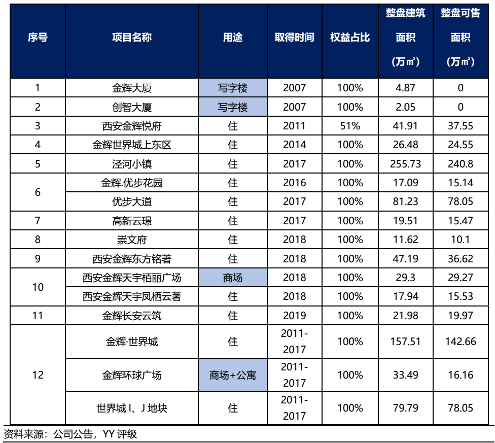 除了西安市場于17年之前存在價格洼地外,金輝集團之所以大規(guī)模布局于西安,或基于金輝嘗試利用獲取綜合用地降低土地成本,而于西安大規(guī)模布局。目前,金輝集團位于西安的12個存量項目存在較大體量的綜合商業(yè)自持,除了涇河小鎮(zhèn)或面臨去化壓力外,其余項目的區(qū)位較為核心。