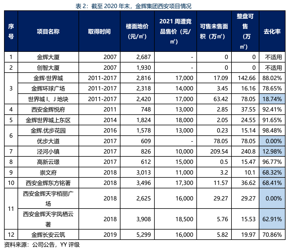 2.2 西安策略:綜合拿地解決成本,衍生待售建面的去化難題