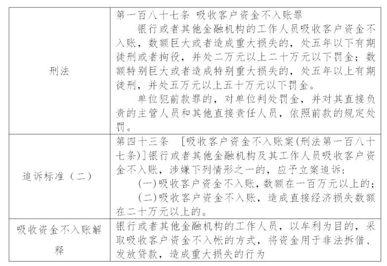 對于本罪中行為人吸收客戶資金不入賬,數(shù)額在一百萬元以上的,或吸收客戶資金不入賬,造成直接經(jīng)濟損失數(shù)額在二十萬元以上的,應(yīng)予立案追訴。
