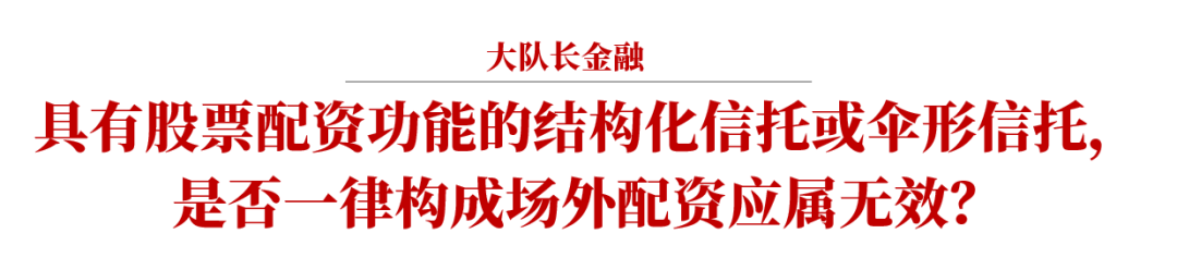 分析各相關(guān)案例最終判決情況,我們認(rèn)為,《九民紀(jì)要》第86條的規(guī)定針對(duì)的是狹義場(chǎng)外配資行為,即P2P公司或私募類配資公司利用互聯(lián)網(wǎng)開展的配資業(yè)務(wù)。信托公司開展的結(jié)構(gòu)化證券信托業(yè)務(wù)不直接等同于場(chǎng)外配資,不能僅以結(jié)構(gòu)化信托或傘形信托具有配資功能并投資于證券市場(chǎng),就認(rèn)定其為場(chǎng)外配資而應(yīng)當(dāng)無(wú)效。
