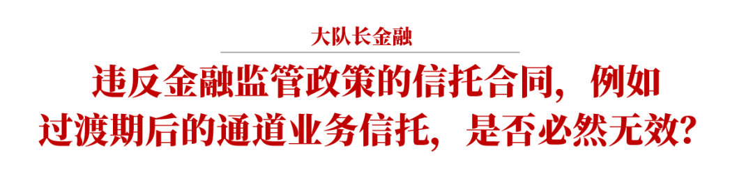 在絕大多數(shù)信托合同效力之爭(zhēng)的案例中,當(dāng)事人主張合同無(wú)效的理由主要是違反各類金融監(jiān)管規(guī)定。包括前述場(chǎng)外配資問題、剛兌問題,以及將要討論的信托通道業(yè)務(wù)效力問題,其核心問題都是,違反金融監(jiān)管政策的信托合同是否必然無(wú)效,其延伸問題是,違反社會(huì)公共利益如何把握。