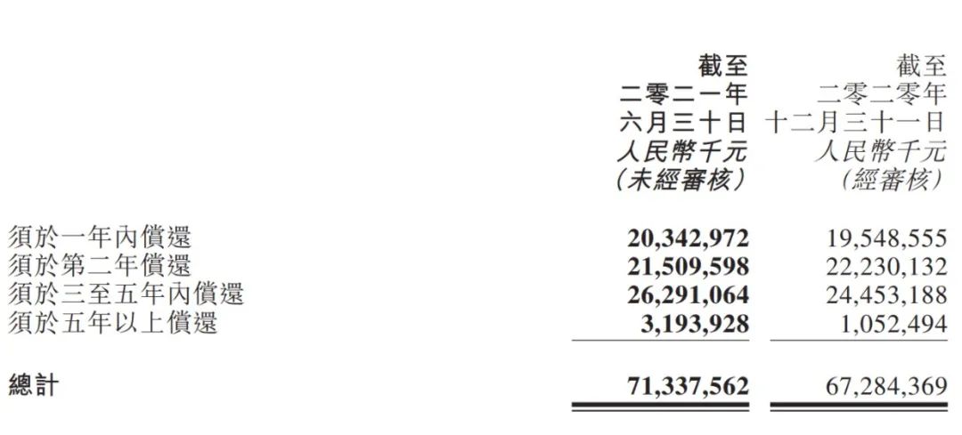 以2021年6月末為參照,正榮地產(chǎn)需一年內償還的債務為203.43億元,比2020年末的195.49增加了不到10個億。
