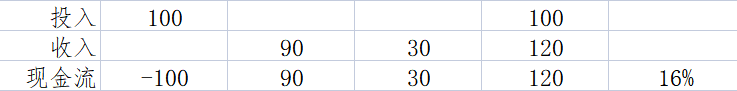 通過excel很容易得到IRR=16%