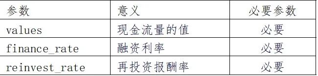 MIRR(values, finance_rate, reinvest_rate)
