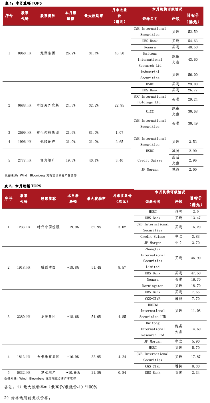 1月,成分股表現(xiàn)較好。龍湖集團(tuán)、中國海外發(fā)展、祥生控股集團(tuán)漲幅居前;而時代中國控股、融創(chuàng)中國、龍光集團(tuán)則跌幅居前。