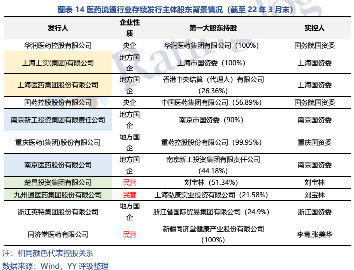 股東背景:醫(yī)藥流通行業(yè)發(fā)債主體以國(guó)企為主。