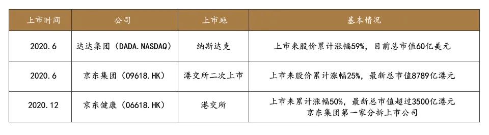 京東系前三家上市公司基本情況表