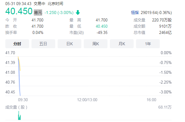 上市當(dāng)日,京東物流股價一度漲超18%,總市值超2800億港元。而在上市后首個交易日,京東物流開盤價格由上市當(dāng)日的41.700港元下降至40.450港元。
