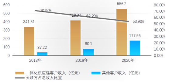 2020年一體化供應(yīng)鏈客戶貢獻營收比重達75.8%,相比2018年的90%下降了近16個百分點。