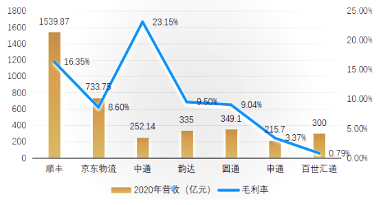 物流行業(yè)2020年營收、毛利率