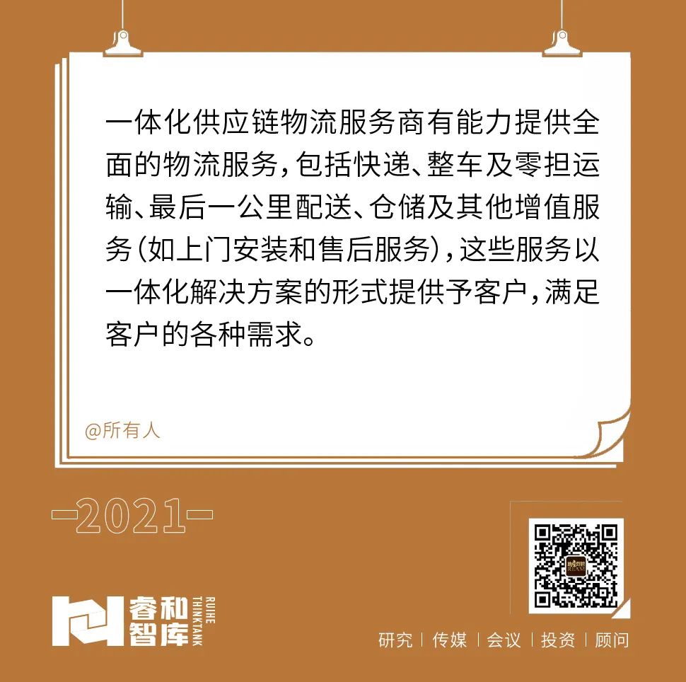 中國經(jīng)濟數(shù)字化快速發(fā)展,終端消費者多樣化、個性化的需求,促使企業(yè)需要提供更為高效靈活的供應(yīng)鏈物流服務(wù)。此外,一體化供應(yīng)鏈物流服務(wù)對企業(yè)供應(yīng)鏈數(shù)據(jù)進行覆蓋和分析,為企業(yè)提供增值服務(wù)。