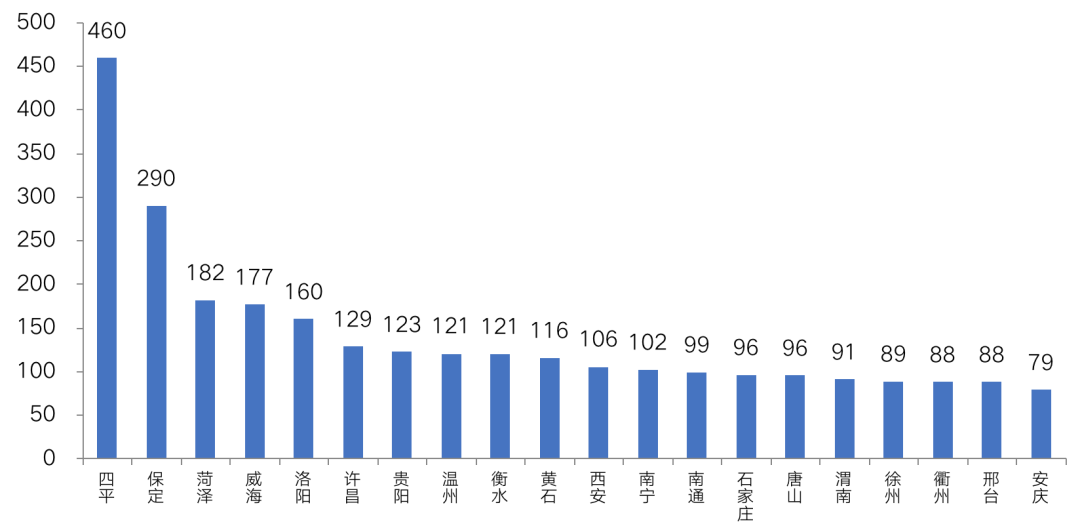 涉宅土地供應量TOP20城市(萬平方米)