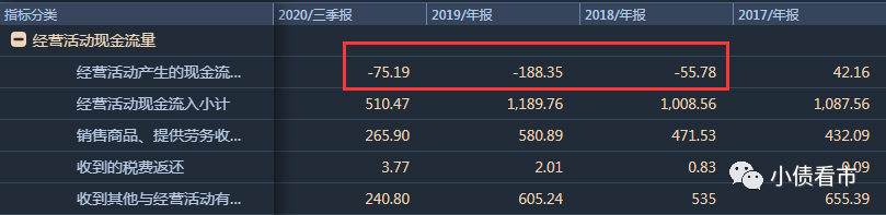 2018年至2020年前三季度,海淀國資經(jīng)營性現(xiàn)金流凈額分別為-55.78億、-188.35億以及-75.19億元,對債務(wù)和利息的保障能力降低。