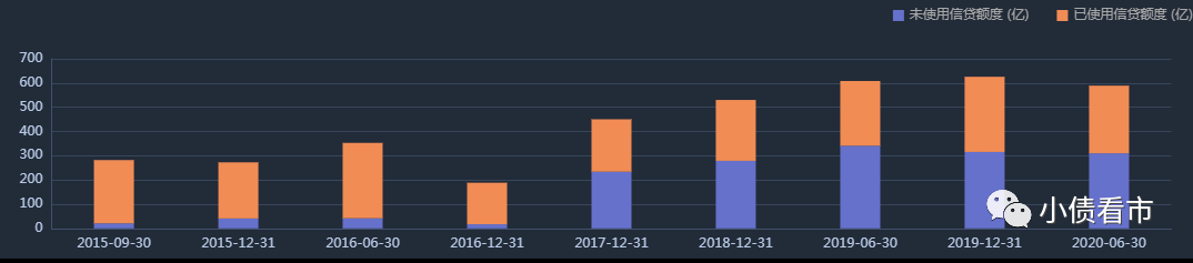 在備用資金方面,截至2020年6月末協(xié)信遠(yuǎn)創(chuàng)授信總額為589.29億元,未使用授信額度310.17億元,可以看出財(cái)務(wù)彈性尚可。