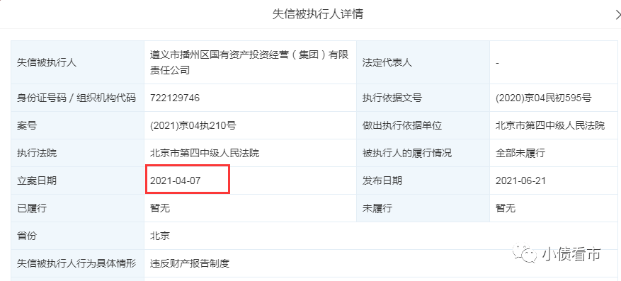 今年4月,由于與華融信托的糾紛,播州國(guó)投未履行法院裁定的給付義務(wù),不僅被列為失信被執(zhí)行人,還被采取限制消費(fèi)措施。