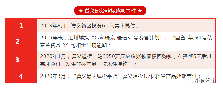 《小債看市》統(tǒng)計(jì),近年來(lái)遵義共有9家發(fā)債城投平臺(tái)涉及22起非標(biāo)風(fēng)險(xiǎn)事件,以下為幾例典型的“技術(shù)性違約”和非標(biāo)逾期事件。