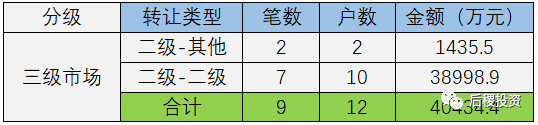 根據(jù)已有數(shù)據(jù)顯示,三級(jí)市場總成交12戶,總成交金額約4億元。成交規(guī)模最大的為二級(jí)投資機(jī)構(gòu)之間的債權(quán)出讓,成交金額在三級(jí)市場中占96.5%。