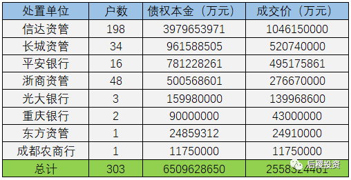另外需要補(bǔ)充說明的是:本次統(tǒng)計(jì)四川省2019年度成交公告共計(jì)539戶,其中債權(quán)本金顯示為未透露狀態(tài)的有71戶。未透露成交記錄的明細(xì)如下: